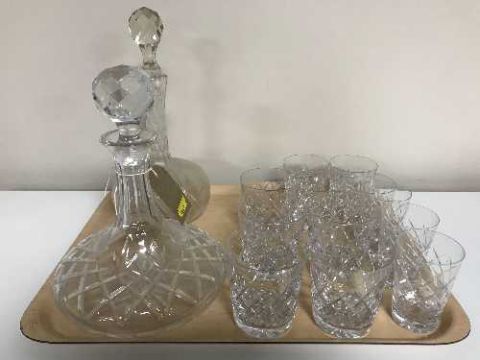 A tray of lead crystal ship's decanter, one further decanter and assorted lead crystal drinking glasses