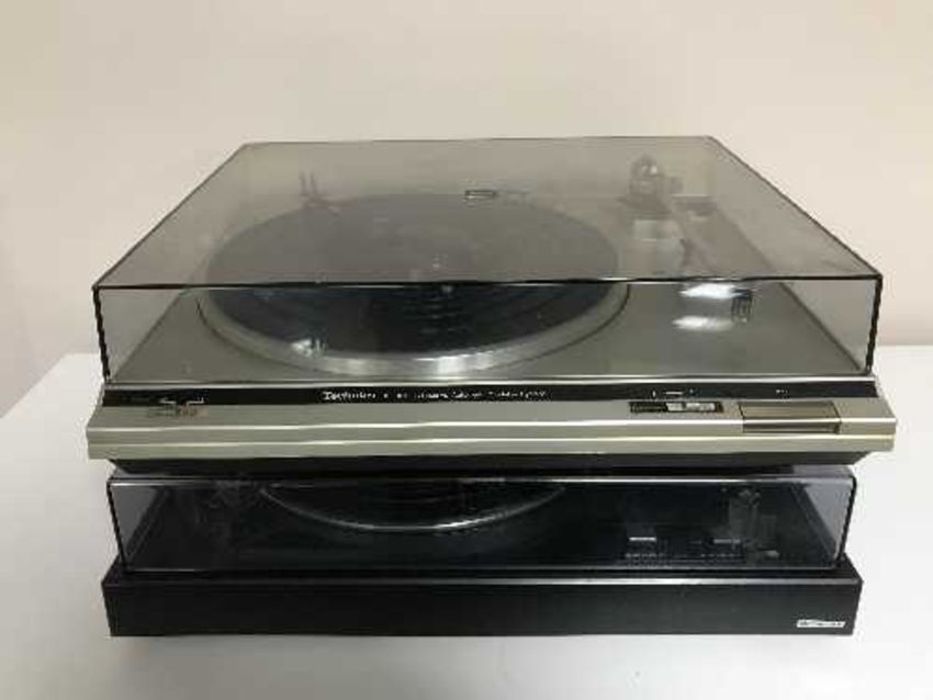 A National Panasonic stereo system with belt drive turn table together with a Technics SL -B21 turntable and Sharp automatic stereo turntable RP-1144