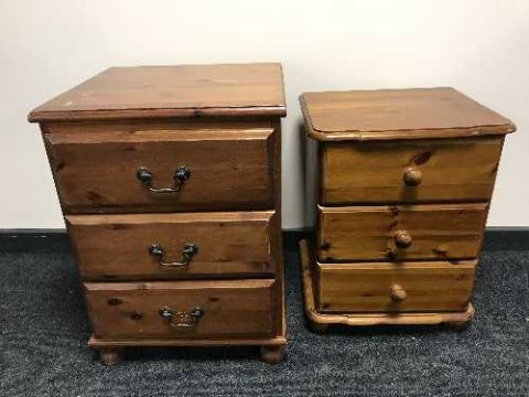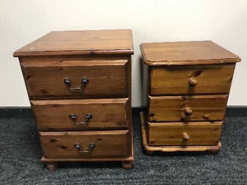 Two pine three drawer bedside chests