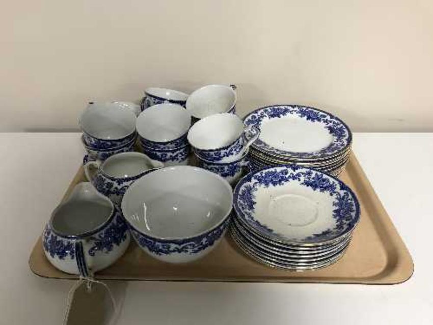 A tray of thirty three pieces of antique Salisbury blue and white china