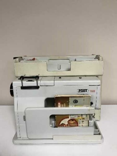 A cased Pfaff 1222 electric sewing machine