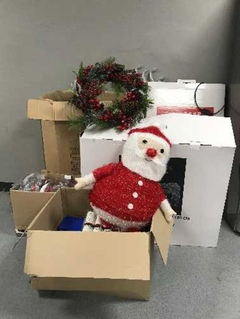 A boxed John Lewis 7' pre lit Christmas tree, a large quantity of indoor and outdoor lights