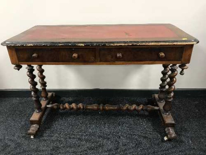 A Victorian mahogany leather topped side table
