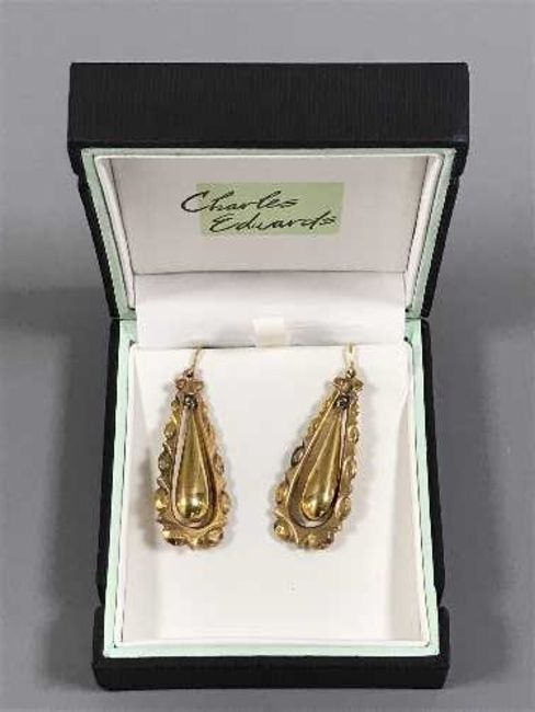 A pair of antique gold earrings