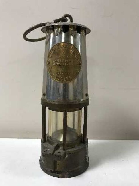 A chrome and brass Eccles Protector miner's lamp Type 6