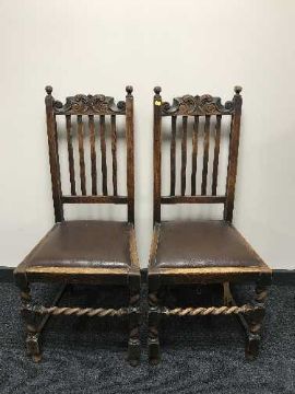 Four carved oak barley twist dining chairs