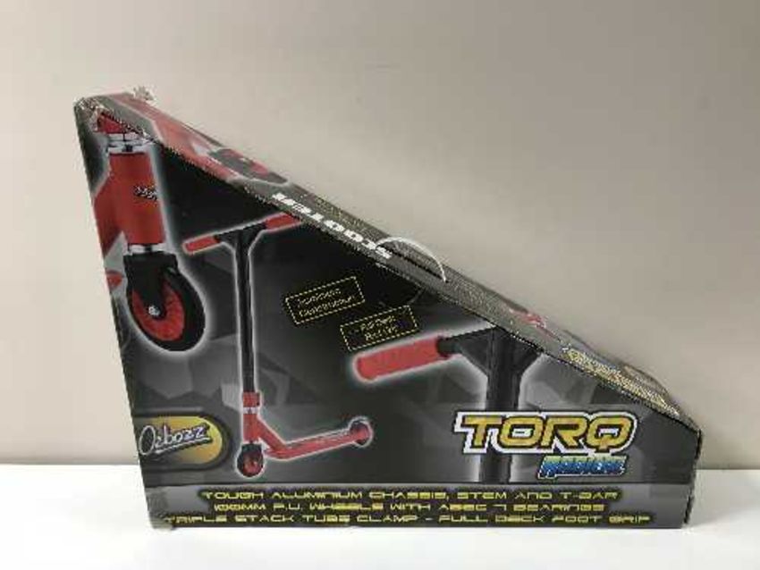 A Torq radical scooter, boxed.