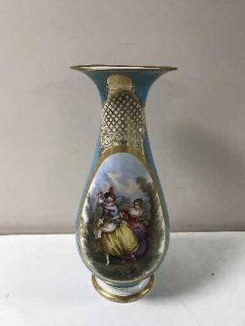 A large French china gilt and transfer printed vase together with a hand-painted charger