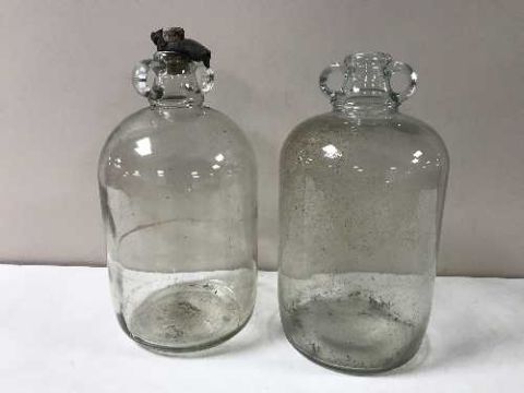 A box containing seven demijohns together with two contemporary vases