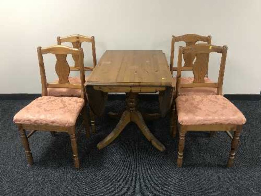 A pine drop leaf table and four chairs