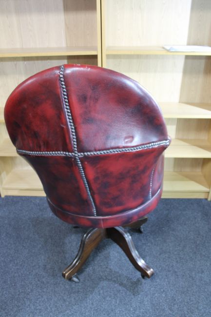 Please note that there is significant movement in the leg frame and the chair is currently unstable to sit on. Small tear to leather of armrest. Otherwise fair condition.