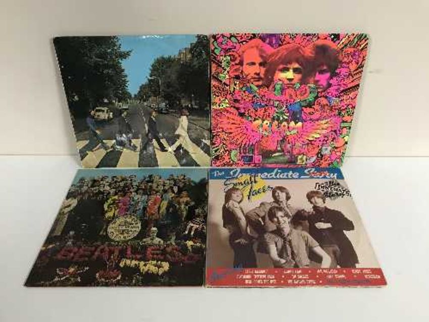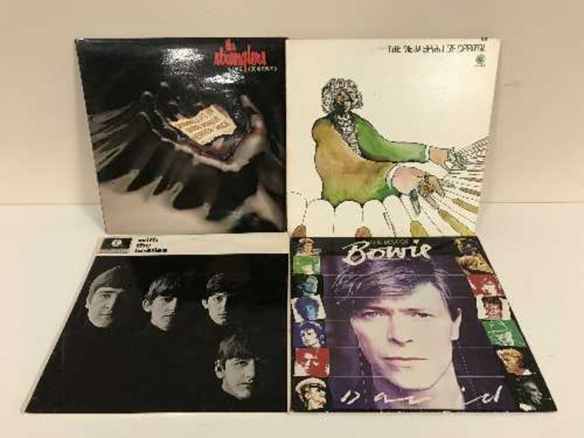 Seven boxes of LP records - David Bowie, Led Zeppelin, Kiss, The Beatles etc