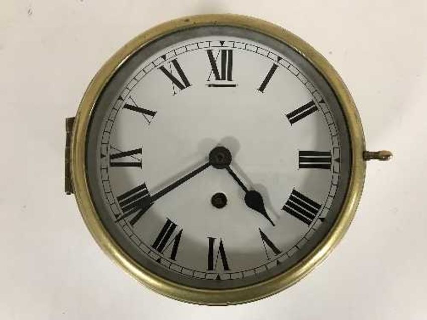 A circular brass-cased ship's timepiece (recently serviced by the vendor)