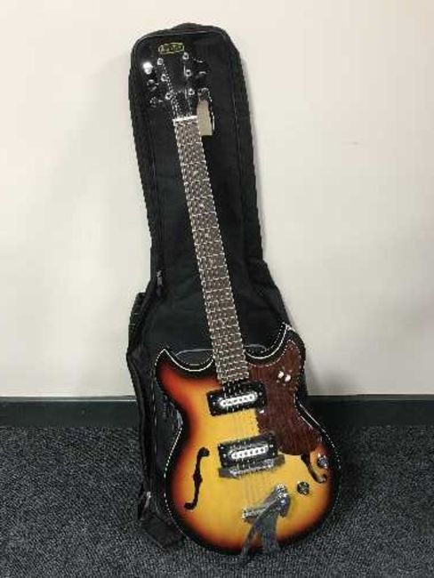 A 1960's Audition electric semi acoustic guitar in soft carry bag