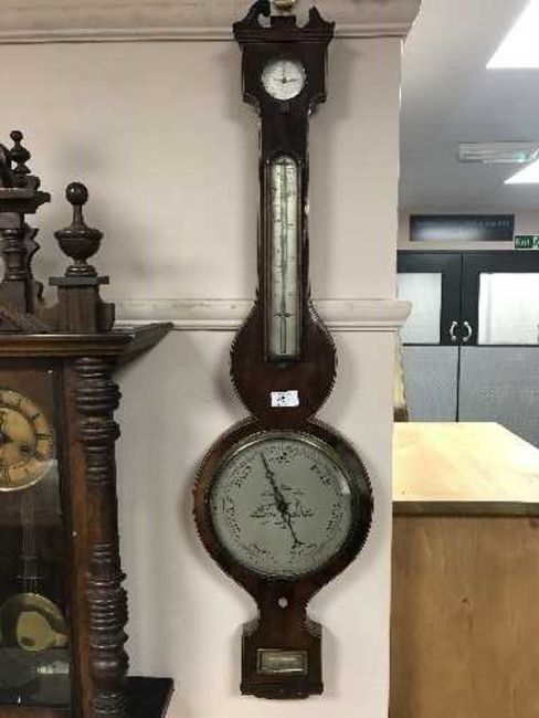 A Victorian inlaid mahogany banjo barometer