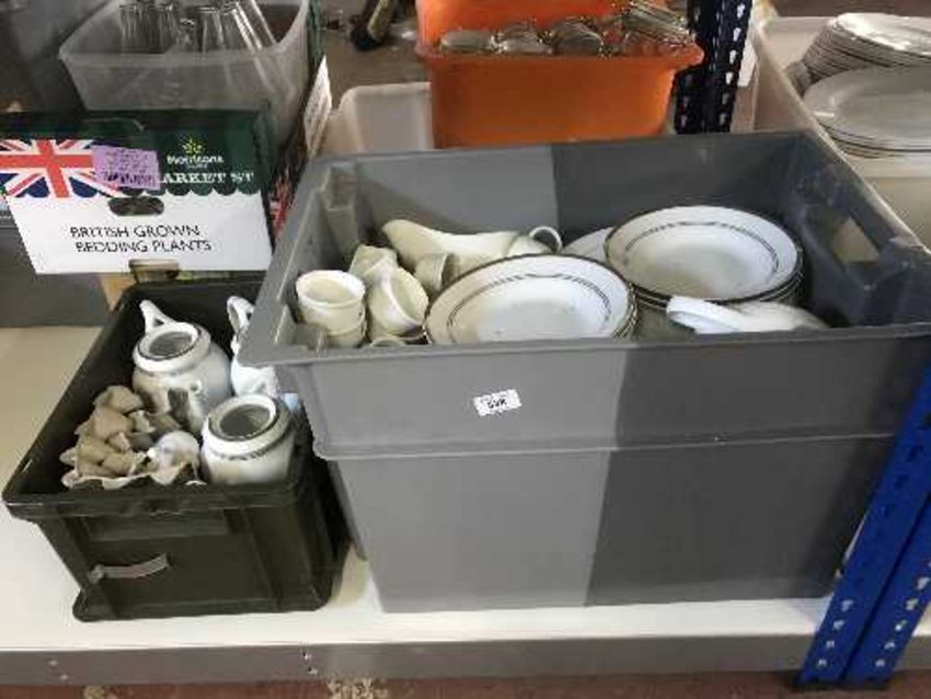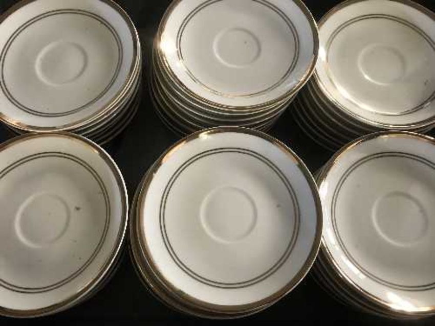A quantity of gilded and white commercial dinner ware