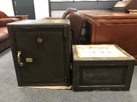 A safe with two keys on stand
