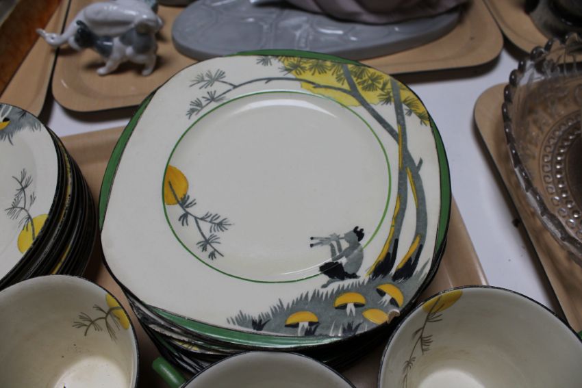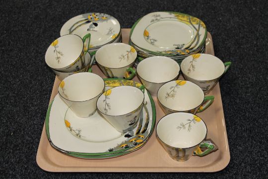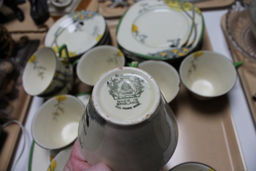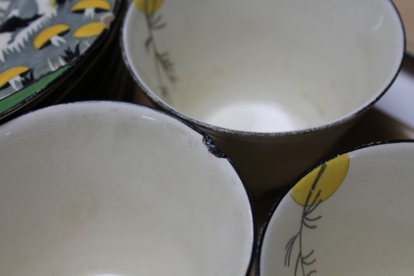 Considerable surface wear throughout. Several teacups and several sideplates with chips to the rim.