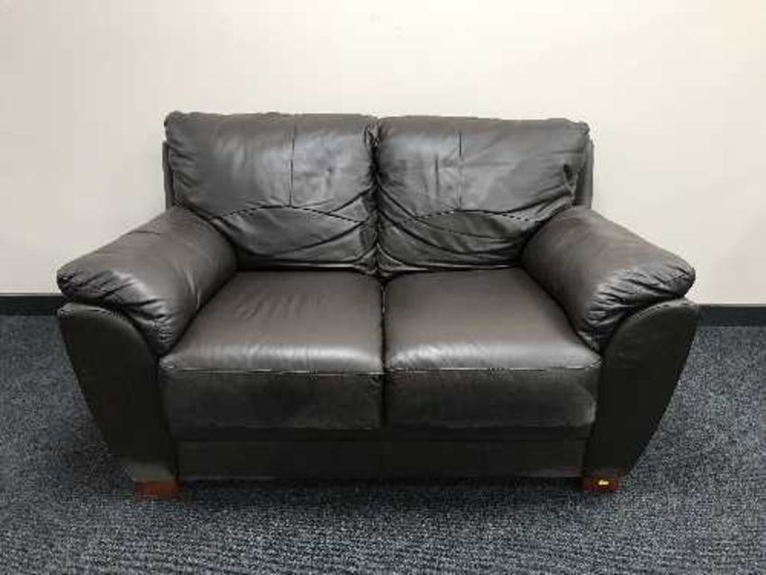 A pair of brown leather two seater settees