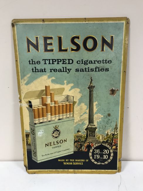 A Nelson's Tipped Cigarette advertising sign on cardboard