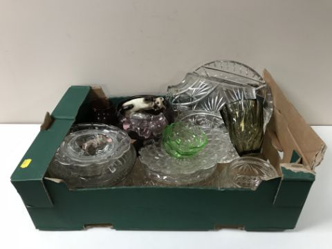 A pallet of twelve boxes of assorted glass ware, tea china, dinner ware, bric a brac etc