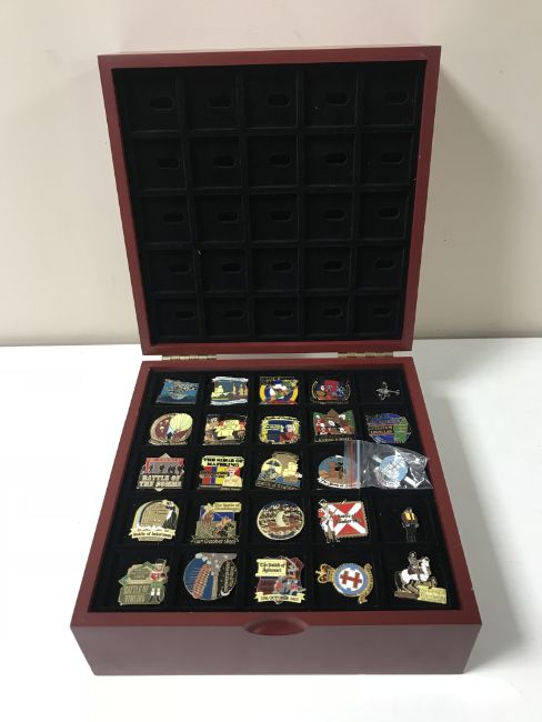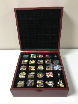 A cased set of British Victory enamel pin badges issued by the Danbury Mint.