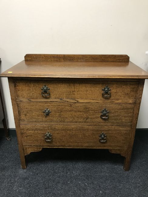An Edwardian oak three drawer chest