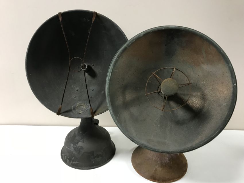 Two vintage French copper heat lamps