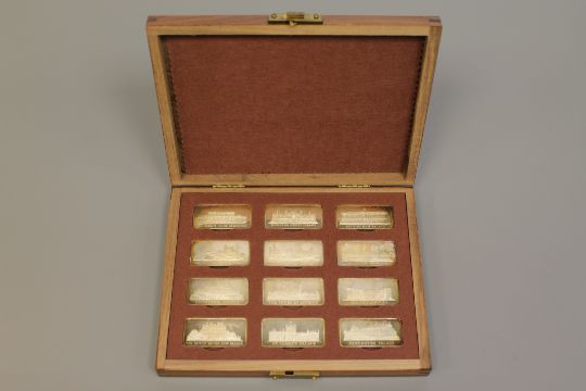 The Birmingham Mint, Royal Palaces, A collection of 12 sterling silver ingots, one of a limited edition of 3000, boxed with certificate.