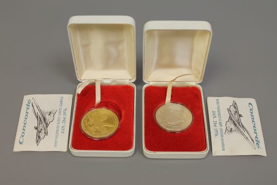 Two silver proof medals, The First Passenger Flight of Concorde 1976