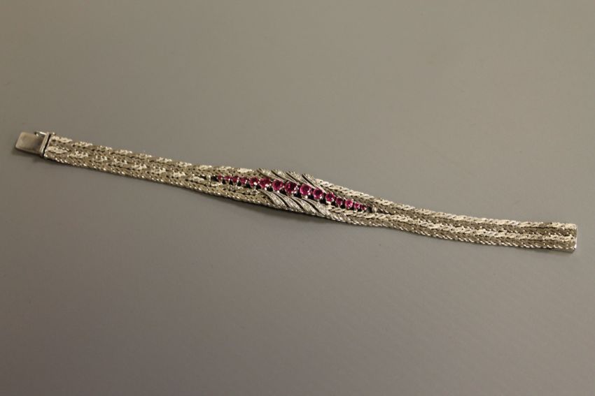 A fine quality ruby and diamond bracelet in 18ct white gold, 52g.