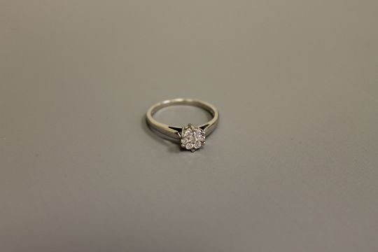 An 18ct white gold diamond cluster ring, size S