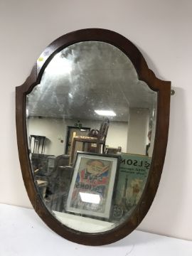 A large mahogany framed shield mirror and an oval mirror