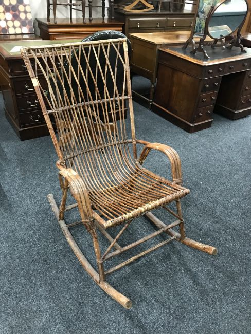 A vintage bamboo rocking chair