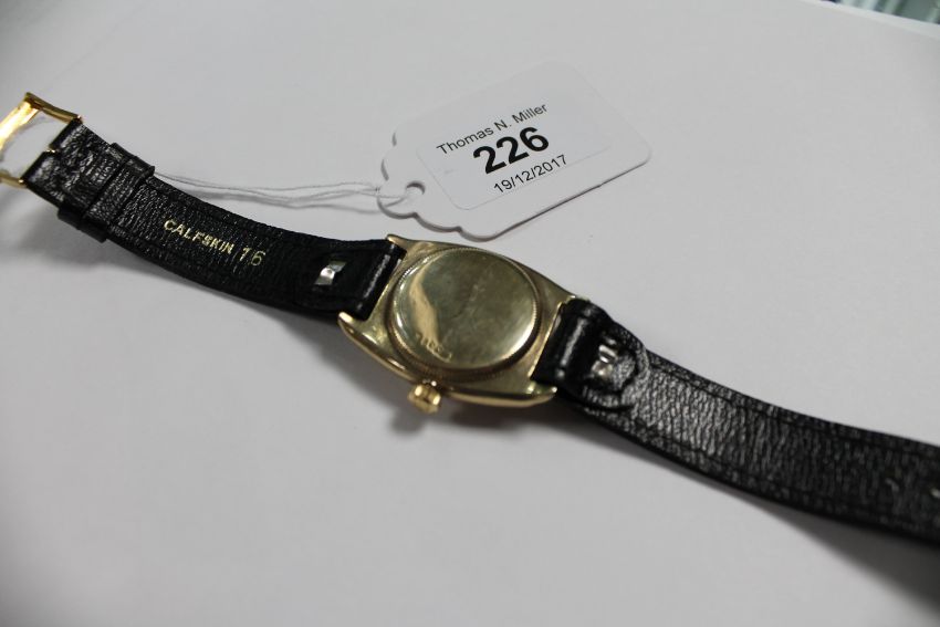 A Gents 9ct gold Rolex Oyster Viceroy wristwatch, 17 jewel lever movement, screw-down crown signed Oyster Patent, case 29mm, black dial with Arabic numerals and subsidiary seconds, case back numbered 11505