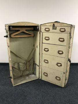 An early 20th century large vellum travelling wardrobe