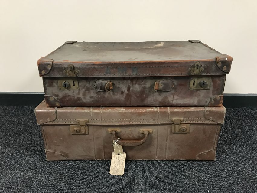 Two vintage leather luggage cases