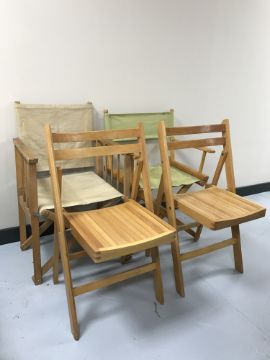 A pair of folding beech kitchen chairs and two director's chairs