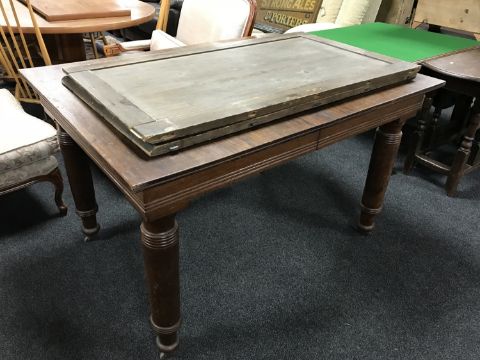 An early 20th century oak pull out table with two leaves