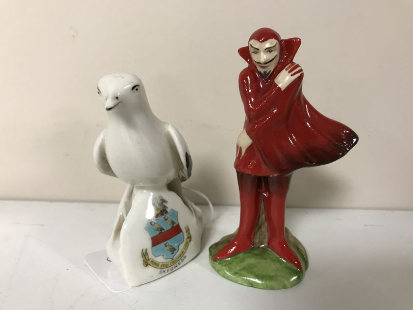 A Carlton crested china ornament - Winkie the Glad eye bird, together a Carlton china Collector's club figure - Mephisto (2)