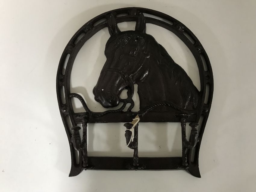 A cast iron horse head hook