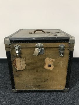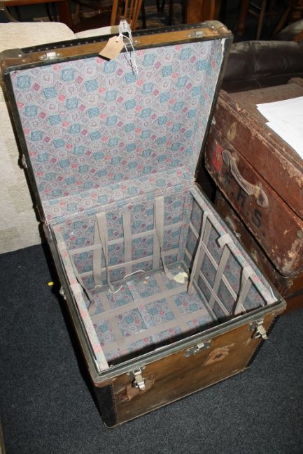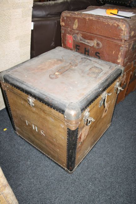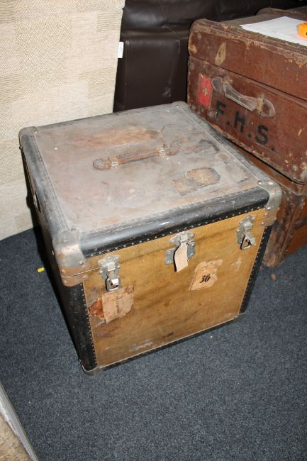 This measures 56x56x56cm. The exterior is somewhat dusty and dirty but the interior is in better condition. See additional images.