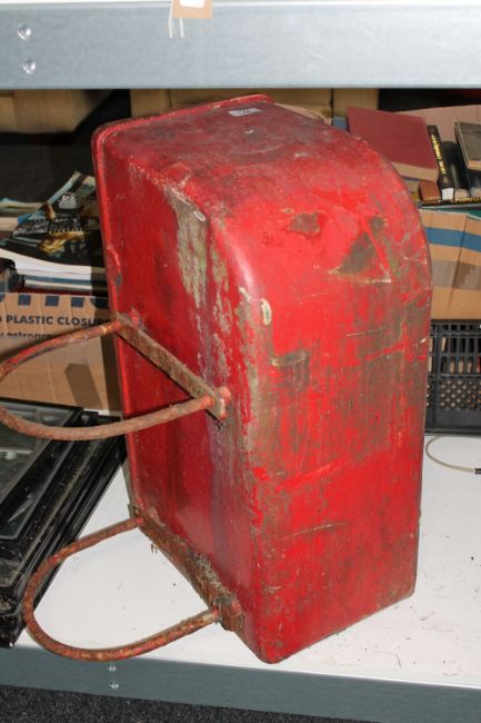 This has two side-mounted metal hoops to attach it to a lamp post. The postbox is in weathered condition, see additional images. Unfortunately no key could be located.