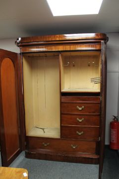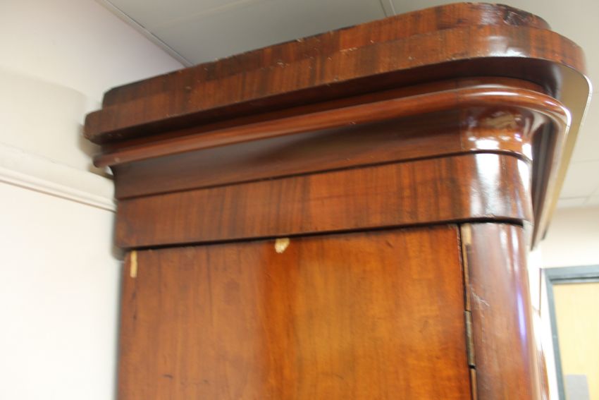 Some small areas of veneer loss. Moulding to one door coming away slightly. Generally in fair condition. Measures 217cm high, 155cm wide by 70cm deep. See additional images.