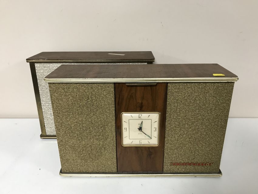 Two Ready Fusion speakers from the Radio Distribution Era, one with built in clock