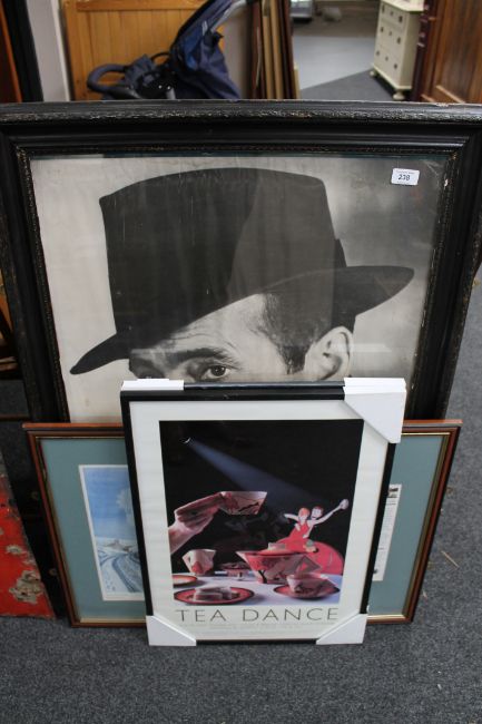 A framed Humphrey Bogart black and white print, two framed Art Deco Clarice Cliff crockery prints, framed Arthur E Gillis limited edition print "Duchess on Hamilton over Shap" (4)