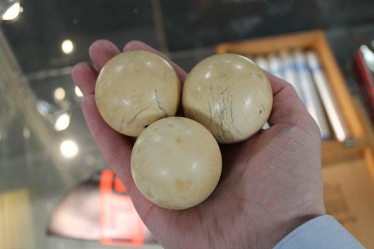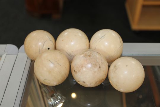 These each measure 5cm in diameter. Total weight 712g. Each with typical natural splits and cracks. Good antique patina. Overall good condition.