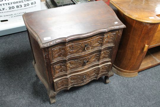 A twentieth century carved oak three drawer chest