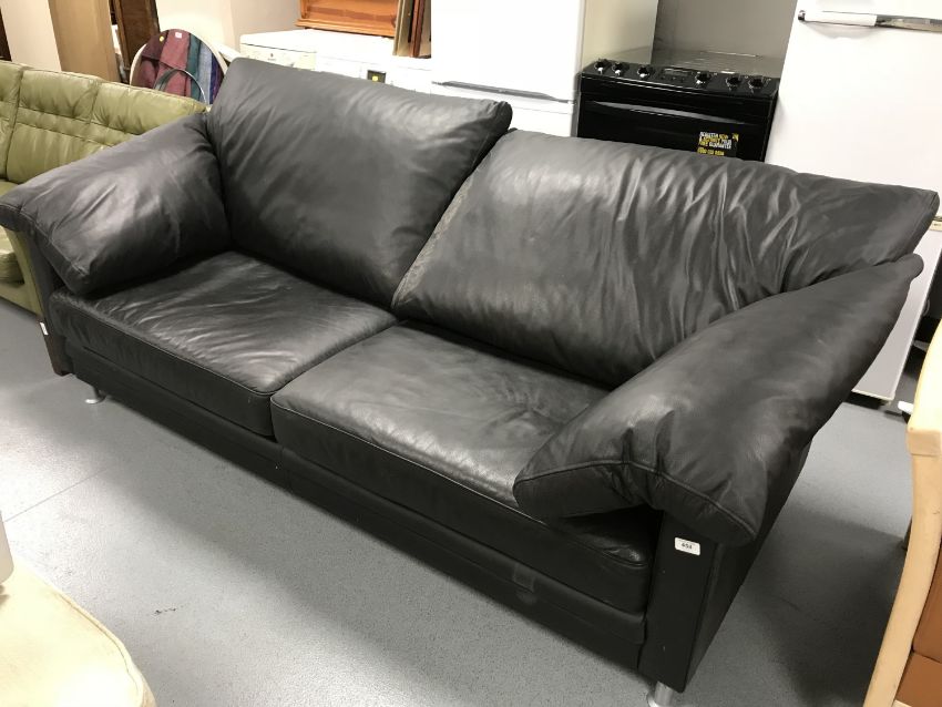 A contemporary black leather settee