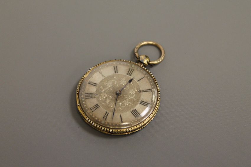 An antique Swiss 18ct gold and enamelled key wound pocket watch